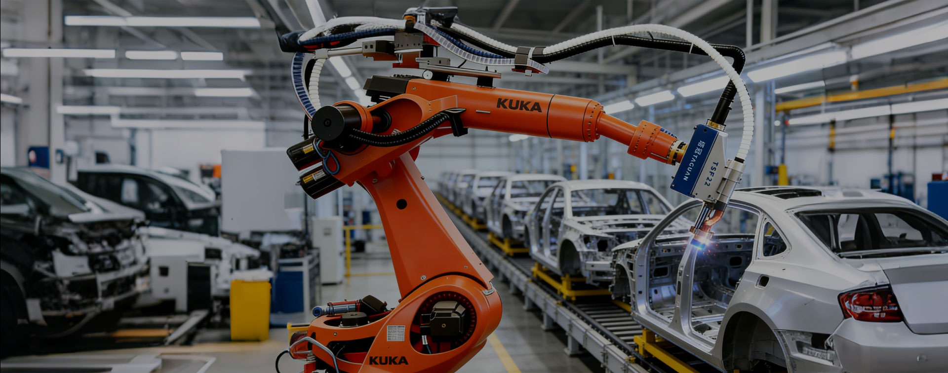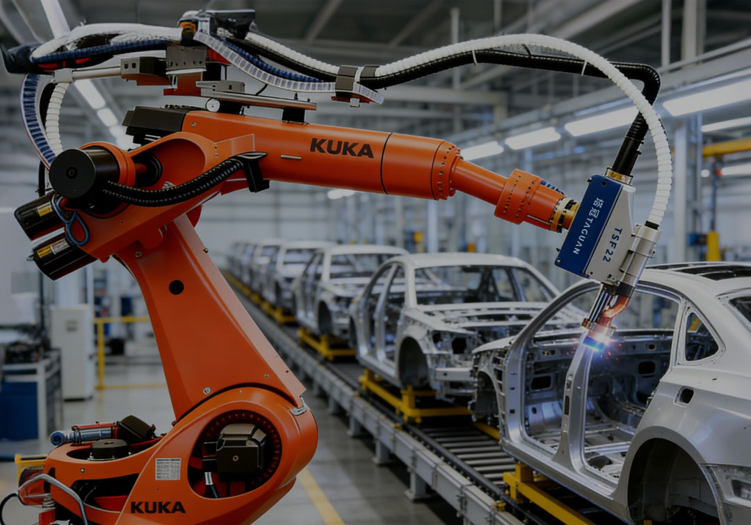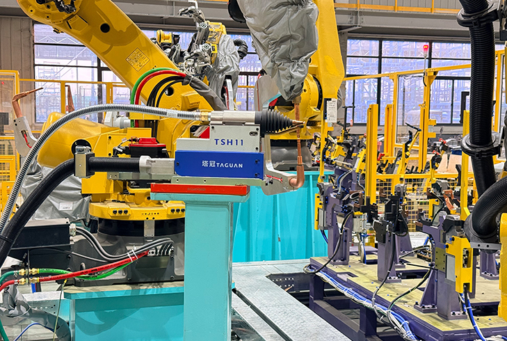 整合全自动螺柱焊电源、高精度送料系统与机器人焊枪,通过±0.1mm重复定位精度、AI自适应电流控制与实时电网补偿技术,实现焊接节拍提升30%-50%,良品率稳定高于99.99%,并构建“参数-生产-质量”全链路数据追溯体系,全面适配白车身高速自动化产线。
