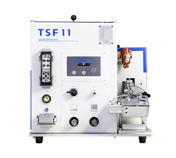 螺柱焊机送料器(TSF1X)与电源及控制系统(TSE1X)配合使用,主要功能是提供自动送螺柱功能,并负责精确控制全自动/半自动焊枪动作,是构建自动化焊接系统必不可少的一环。送料器(TSF1X)是针对国内汽车工业市场特别开发的设备,得益于专利设计的气缸结构,提高送料节拍的同时还实现了低噪音,整机模块化设计使得故障率低,维护方便。该送料器可输送标准法兰螺柱、大法兰螺柱、接地螺柱及T型钉。